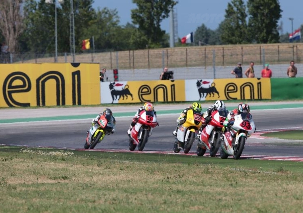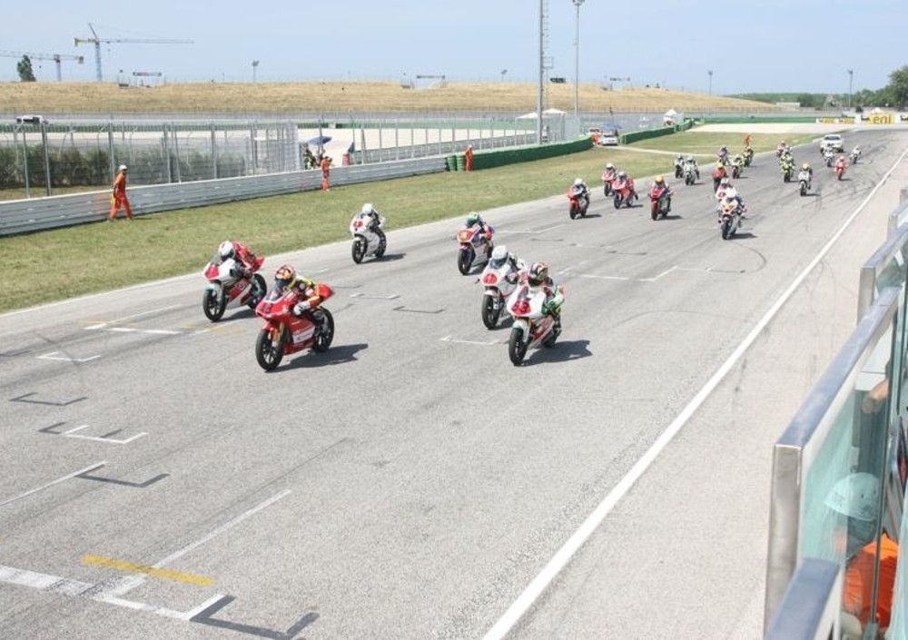 NSF250R Cup Seconda gara nel pomeriggio di domenica per la NSF250R con Anthony Groppi che prende subito il comando per andare a vincere la gara in solitaria. Dietro spettacolare duello tra Ciprietti, Fedi, Doria e Caruso . Cadono subito Torlaschi e Clementi per caduta . Sul traguardo,dietro al dominatore Groppi giungono in volata Ciprietti su Fedi e Caruso su Doria che si aggiudica il giro più veloce. Sesto Veronesi, quindi Sulis, Raimondi e Guzman.