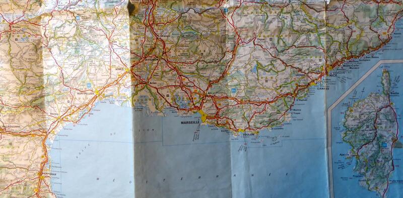 La prima tappa, da Bologna (I) a Mentone (F), di circa 500 chilometri, era conclusa. Il nostro viaggio era iniziato, ma non avevamo pianificato altre soste e itinerari con precisione. Avremmo viaggiato, ci saremmo fermati per vedere qualcosa oppure perché stanchi di guidare. Volevamo arrivare a Tunisi, ma non avevamo idea del tempo che sarebbe occorso e delle strade che avremmo trovato, tutte le informazioni allora si potevano ricavare solo dalla carta Michelin.