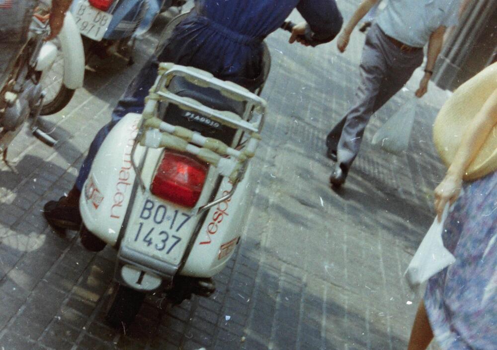 Fummo accolti con entusiasmo dall’officina Mateu a Barcellona, che decise di sostituire il pistone della P200E. Questo modello non era ancora importato in Spagna, così dovemmo attendere l’arrivo del pezzo di ricambio inviato da Europ Assistance per via aerea. Ci stabilimmo in un campeggio sul mare, a Castelldefels, subito a sud di Barcellona, dove passammo alcuni giorni di relax in attesa della riparazione. Ogni giorno si andava al vicino aeroporto per vedere se il nostro pistone fosse arrivato dall’Italia. Per il resto facemmo un po’ di mare e visitammo Barcellona. Alessandro ci obbligò a mangiare la Paella della Casa Costa, perché sosteneva essere la migliore della città. In quel periodo la Spagna stava abbandonando il regime dittatoriale del Generale Franco: quell’estate, il nuovo Parlamento iniziò a formulare la nuova Costituzione, che fu approvata in dicembre. Il clima che si respirava era molto allegro e festoso, con molta musica e tanti concerti per le strade, gente in giro nelle piazze e nelle ramblas in quella ancora calda fine estate del 1978.