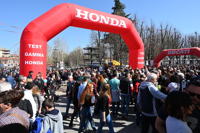 Sabato sera fin dopo cena la città è animata dai motociclistici, ma è il giorno dopo che si può assistere a qualcosa di unico, in mostra di ogni tipologia di modello ed età, non ne manca nessuna, dalla MOTO GUZZI con botte del vino incorporata alla iper sportiva, 100 anni di storia delle due ruote, noi parcheggiamo la nostra Africa Twin Adventure orgogliosi di poterlo fare il sabato vicino ad un’altra moto che ha scritto un capitolo delle 2 ruote, la Honda RC 30 sempre un bel pezzo da collezione!