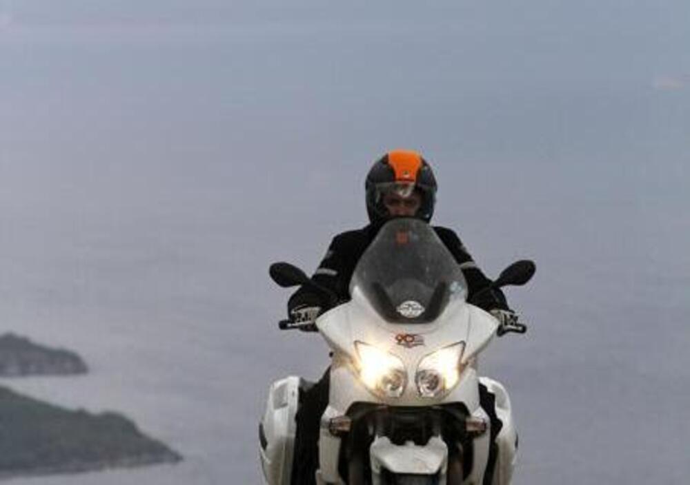 Per oggi abbandono la Stelvio e scendo, vista la differenza di altezza della sella, sulla Norge. Cambiano i parametri di guida, ma si rimane sempre nella zona alta della classifica dei voti. Se la Stelvio appare più dinamica e precisa nella guida, la Norge strappa qualche voto in più alla voce confort. Il merito è quasi del tutto attribuibile alla sella, meglio conformata e decisamente più imbottita rispetto a quella della Stelvio, ma anche le sospensioni hanno i loro meriti. La posizione di guida è vecchio stile rispetto alla enduro-stradale di Casa, con le ginocchia che per i miei gusti risultano troppo in alto e rendono la postura un pelo incassata. Il motore è lo stesso, ma la differente rapportatura, più distesa sulla Norge, rende meno brillanti le riprese e le accelerazioni (ma aiuta anche alla voce consumi con un – 15% alla pompa della benzina), mentre sono presenti dei leggeri giochi della trasmissione nel tiro-rilascio, particolare sconosciuto alla endurona.