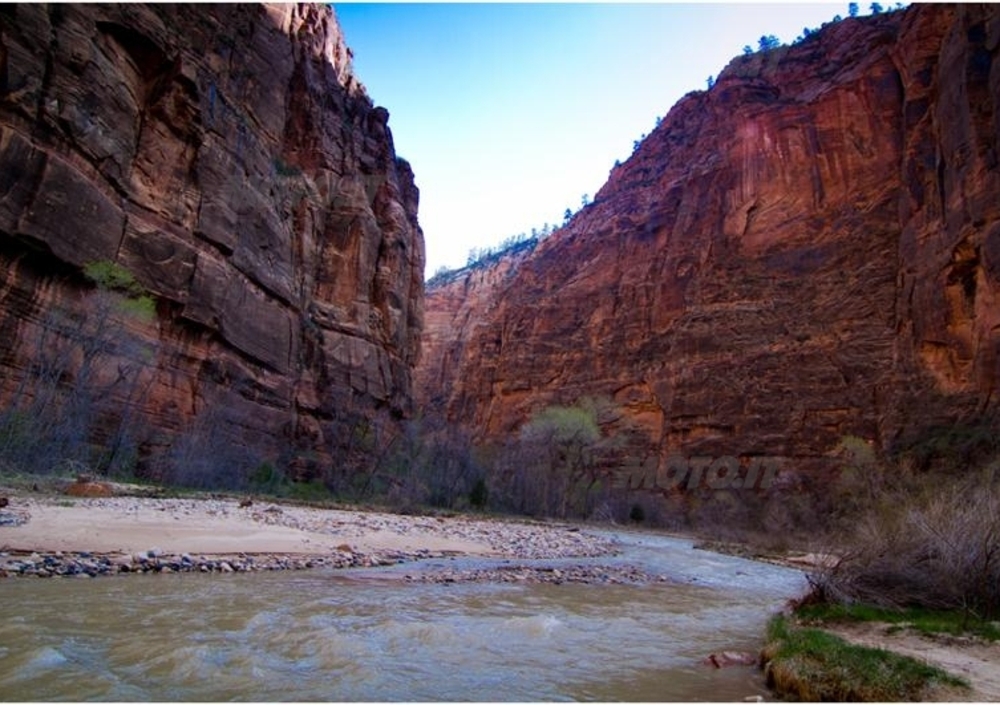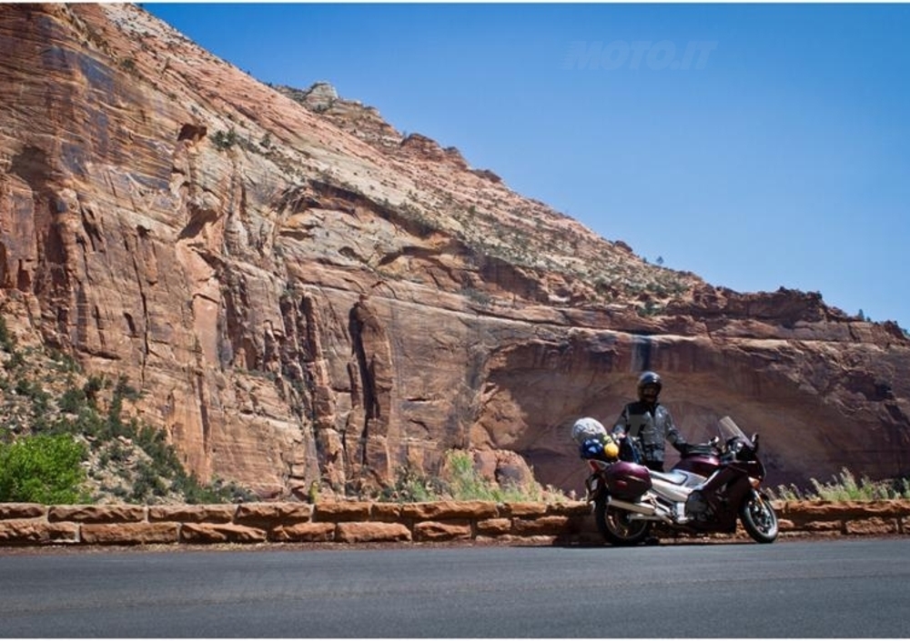 Partenza da San Diego ore 9.30 direzione 15N. Passo il confine col Nevada, poi Las Vegas alle 2.30, mai guidato sulla strip in moto.. Altre 2 ore in autostrada entrando brevemente in Arizona e poi in Utah. Per costruire l'autostrada in Arizona hanno dovuto far saltare montagne intere, la freeway si fa largo attraverso pareti di roccione rosse, stesso colore del Grand Canyon.