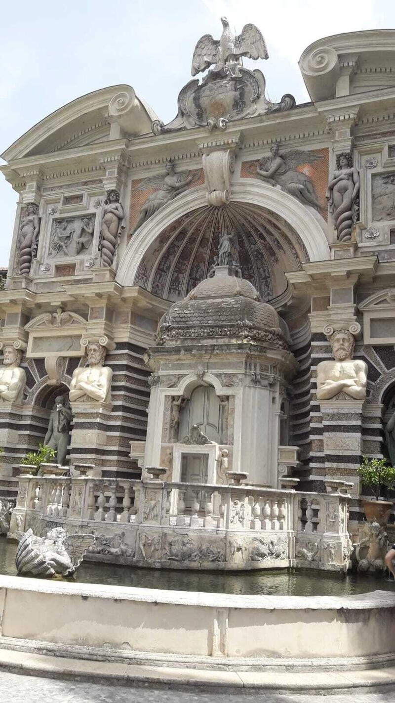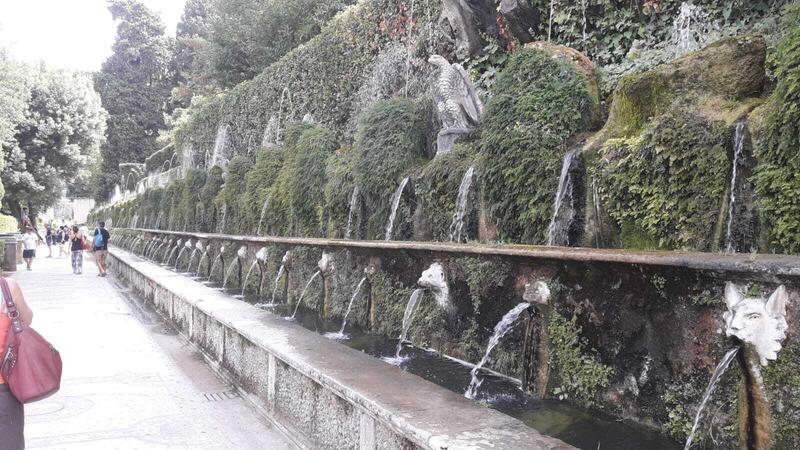 Dopo avere visitato Villa Adriana e il vecchio borgo, quest’anno è la volta di Villa d’Este, che nei miei precedenti passaggi non sono mai riuscito a vedere. Il timore questa volta è quello di non riuscire ad apprezzarne la meraviglia: oggi siamo vestiti da lunga percorrenza e a Tivoli, come in mezza Europa (mal comune non significa affatto mezzo gaudio) fa un caldo soffocante. Perciò oltre a posteggiare le moto, provvediamo a un rapido cambio di abiti. Via stivali e giacche da moto e, gipsy style, proviamo a indossare bermuda e sneaker per aumentare il comfort durante la visita. Stiviamo e lucchettiamo alla meno peggio caschi e bagaglio e, mascherati, ci mettiamo in coda alla biglietteria. Non mi dilungo nella descrizione dei tesori della villa che comunque racconta ogni guida, compresa quella che Anna compulsa davanti a ogni singolo zampillo d’acqua. Nel parco ce ne sono a migliaia ma Anna ci ragguaglia su autore, epoca e significato di ognuno. Noi ascoltiamo ma sono la visione d’insieme e alcune prospettive a lasciarci letteralmente a bocca aperta. Gli oltre 4 ettari di parco ci tranquillizzano anche rispetto al numero di passi che ogni giorno, sebbene per molto tempo in moto, vogliamo fare: anche oggi i 10 mila passi sono garantiti. Esattamente come i 2-3 litri d’acqua che beviamo, e immediatamente sudiamo, per far fronte alla calura che anche nell’ombreggiato parco della villa non ci abbandona.