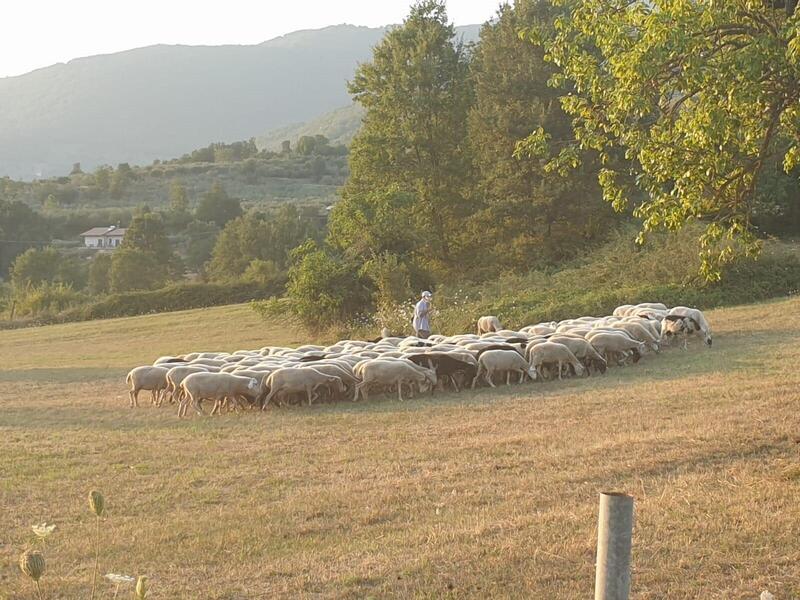 Il bello di questi casali di campagna sono anche i vicini di casa. O meglio di terra. Forse attratto dalle signore ancora in accappatoio e con l’asciugamano a mo’ di turbante per contenere i capelli bagnati, il pastore del campo sotto il Pozzillo, alle prese con il gregge e i cani, si avvicina alla staccionata che separa le due proprietà ma anche due mondi che più lontani non potrebbero essere. Quasi a fare gli onori di casa, il simpatico pastore racconta la sua giornata, i problemi con le pecore, l’importanza del cane per tenerle tutte insieme e soprattutto per proteggerle dai cinghiali che oramai sono una minaccia per mezza Italia e non solo per le povere pecore. Potrebbe anche bastare, ma il buon uomo, solleticato anche dall’attenzione con cui Paola e Babette lo ascoltano, si avventura in una spericolata quanto improvvida lectio moralis che dal gregge, ai cani passa all’universo femminile. Le ragazze non apprezzano affatto l’azzardata iperbole del pastore che le invita anche alla festa danzante giù in paese e si sganciano con grande garbo e senza mettere in imbarazzo il galante filosofo. Cala la sera, cadono finalmente anche le stelle e nella notte cadono anche un paio di cinghiali, seccati da due colpi di schioppo che ci svegliano tra i latrati dei cani messi in allarme dalla presenza dei predatori.