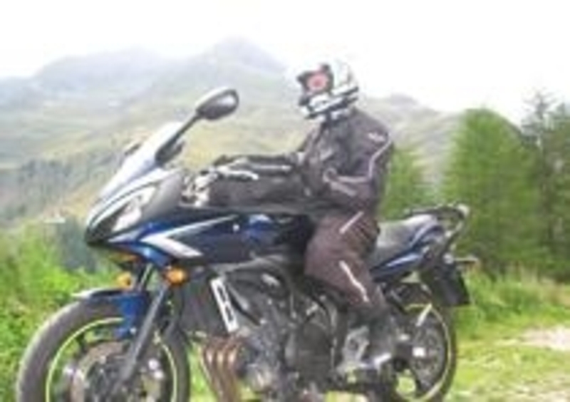 La mia attenzione viene attirata da un bambino che sta seduto sul nostro furgone mentre sua madre è intenta nello scegliere alcuni vestiti, tra le mani tiene una rivista di moto e Maurizio al suo fianco gli racconta del giro fatto il giorno precedente e senza farmi vedere ascolto le sue domande e il suo stupore fino a quando non gli chiedo se gli interessa vedere qualche foto che ho scattato con il cellulare, risponde meravigliato ad ogni immagine e gli domando retoricamente se anche a lui piacciano le moto ricevendo come risposta un deciso “Si”… avrà più o meno otto anni e rimango colpito dalla luce che ha negli occhi quando inizio a raccontare anche io di questo fantastico mondo, gli spiego che essere motociclista non vuol dire correre ma assaporare le sensazioni che regala questo fantastico mondo e mentre parlo capisco che la sua fantasia sta lavorando immaginando magari di essere come noi un giorno. Al pomeriggio torniamo in sella e come destinazione abbiamo tre passi che meritano di essere visti, metto da parte la preoccupazione per qualche nuvola di troppo che copre il cielo e mi avvio insieme a Maurizio verso Merano scoprendo di percorrere una strada che conosco per esserci già stato in vacanza l’anno precedente. La città si fa sempre più lontana cosi come il traffico e le montagne intorno a noi si fanno sempre più verdi e sempre più alte … adoro questo paesaggio, si vedono paesini di case con il tetto a punta immersi nel verde dei boschi e il tutto trasmette quell’aria di pace e tranquillità che non fa mai male provare. Attraversata la valle inizia la salita e in quel momento insieme alla solita frescura sento stappare le orecchie pensando che sia un chiaro segno che stiamo salendo di quota, abbassando lo sguardo vedo la strada tortuosa che abbiamo percorso e questa volta non è bella come il solito perche l’asfalto è irregolare e bisogna stare attenti alle buche che all’improvviso possono presentarsi dopo una curva; attraversiamo delle gallerie dove all’interno fa veramente freddo e dove la strada viene illuminata solamente dai fari perche completamente prive di illuminazione, improvvisamente mi prende un colpo quando durante una salita si spegne la moto forse per l’aria più rarefatta che affatica il motore in ripresa quando deve salire di giri, non ne ho la più pallida idea ma pensare di restare a piedi lassù non mi va proprio quindi inizio a scalare le marce tenendo il motore a regimi abbastanza alti per evitare che accada di nuovo, il mio arrivo si sente in lontananza perché poco prima della cima trovo una pattuglia dei Carabinieri che mi fa segno di rallentare, mi chiedo cosa ci faccia lassù un posto di blocco dove praticamente non passa quasi mai nessuno!!! All’improvviso si presenta il cartello indicante Passo del Rombo, a 2509 metri sul livello del mare e poco più avanti svetta la bandiera Austriaca, siamo quasi al confine, c’è un po’ di movimento e dopo la consueta foto di rito ne approfitto per fare un giro a piedi dove scopro sull’orizzonte una strada che assomiglia moltissimo alle Highway americane: una lunga lingua di asfalto si perde tra i suoi rettilinei di Sali e scendi solamente che a differenza della California o del Texas oltre si trova l’Austria in questo caso. Ironicamente penso a come sia piccolo il mondo, scendendo dal versante italiano la temperatura torna a farsi decisamente più calda e una volta imboccata la salita che porta a passo Giovo (2094 mt. S.l.m.) inizia il divertimento quando dietro a me trovo dei motociclisti austriaci che sembrano andare di fretta … l’asfalto è tornato ad essere in condizioni quasi ottimali, le gomme sono calde e dopo chilometri e chilometri di andatura turistica decido di sbizzarrirmi anche io lanciando il Fazer a centocinquanta su un rettilineo e attaccandomi ai freni per staccare prima di una curva. Gli austriaci sono ancora dietro di me, intuisco dai loro fari che il primo guida una Benelli di grossa cilindrata che a confronto con la mia piccola seicento giapponese regge bene il confronto in velocità, ma sul dritto sono capaci tutti di andare forte e spingo di più quando arrivano le curve portando le gomme al limite della piega e sfiorando con gli specchietti le pareti di roccia che scorrono accanto … riesco a prendere un buon margine con il passare dei chilometri e una volta arrivato in cima faccio segno al mio inseguitore di essermi davvero divertito, lui contraccambia e le nostre strade si dividono quando scendendo per Vipiteno passo davanti alla famosa fabbrica dove producono gli Yogurt che mi provocano un leggero mal di testa dato che ai tempi di quando ho lavorato in un supermercato sono stati i miei migliori amici arrivando al punto di augurare loro il buongiorno ogni mattina all’apertura del banco.
