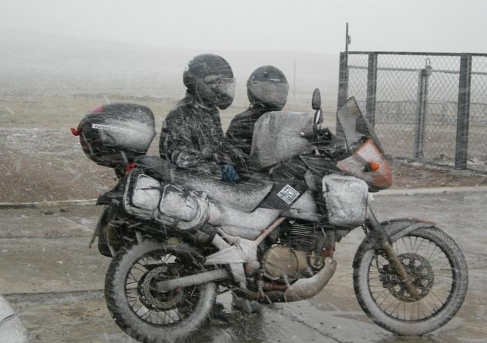 Entriamo dalla dogana di Tashaanta nel nord/ovest del paese. Mentre spettiamo l’apertura degli uffici doganali che sono al momendo chiusi, per pausa pranzo, veniamo investiti da una bufera di neve. Per fortuna un camionista Russo avuto pietà di noi, ci ha invitati a salire al riparo nel suo camion Camaz.