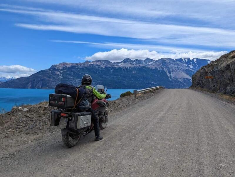 17.02.2024 - Puerto Rio - Chile Chico di 165 km, di cui 150 di sterrato con strette curve e variazioni di altimetriche significative; cascate, laghi, picchi innevati, una coppia di condor si tiene in equilibrio contro vento... sono in accordo con lo spazio che mi circonda, l’energia non mi manca, mi sembra più leggero il procedere.