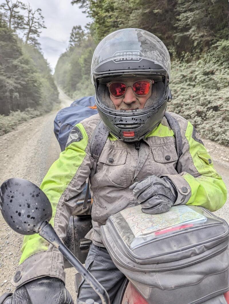 14.02.2024 - Il paesaggio muta, diventando verde e luminoso; la temperatura più mite ricorda la Norvegia; la nebbia apre ai boschi di conifere, sullo sfondo le montagne innevate... la Carrettera Austral ci attende.