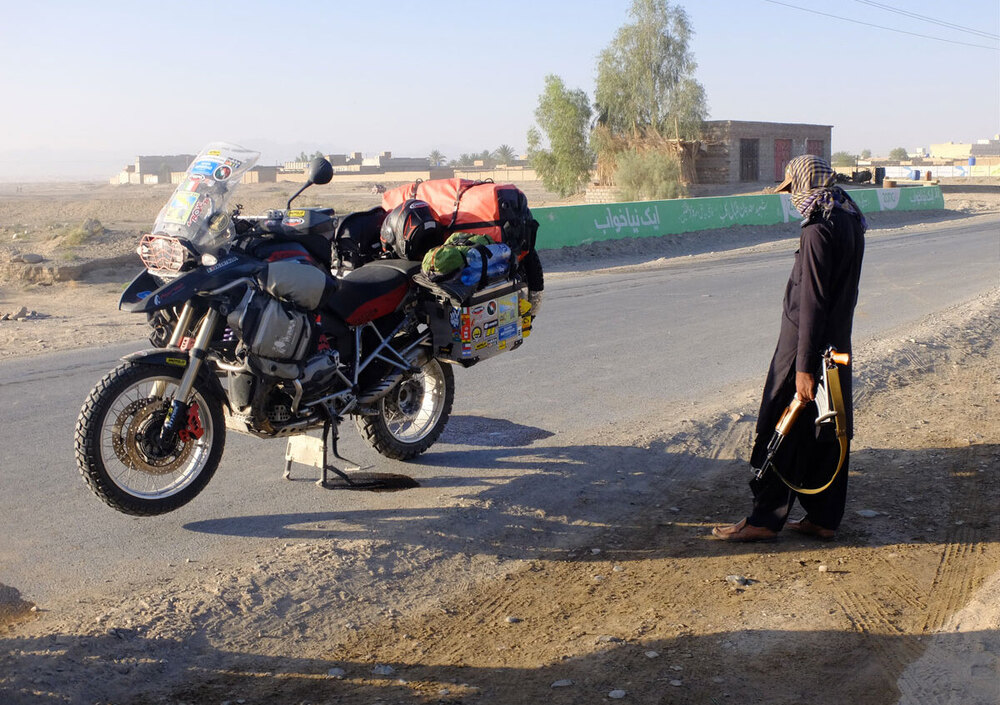 Dobbiamo solo raccogliere il coraggio di entrare e la pazienza di sottostare al volere della scorta armata, la quale ci accompagnerà fino all’uscita dal Paese. Per fortuna non siamo soli: insieme a noi la spensierata Tenerè di Allan, un simpatico motociclista svedese incontrato a Kerman. Nessuno di noi nasconde la propria preoccupazione, sia perché le informazioni su quale sarà il nostro destino nei prossimi giorni sono poco chiare, sia perché comunque, inutile negarlo, stiamo entrando in una zona di pericolo.