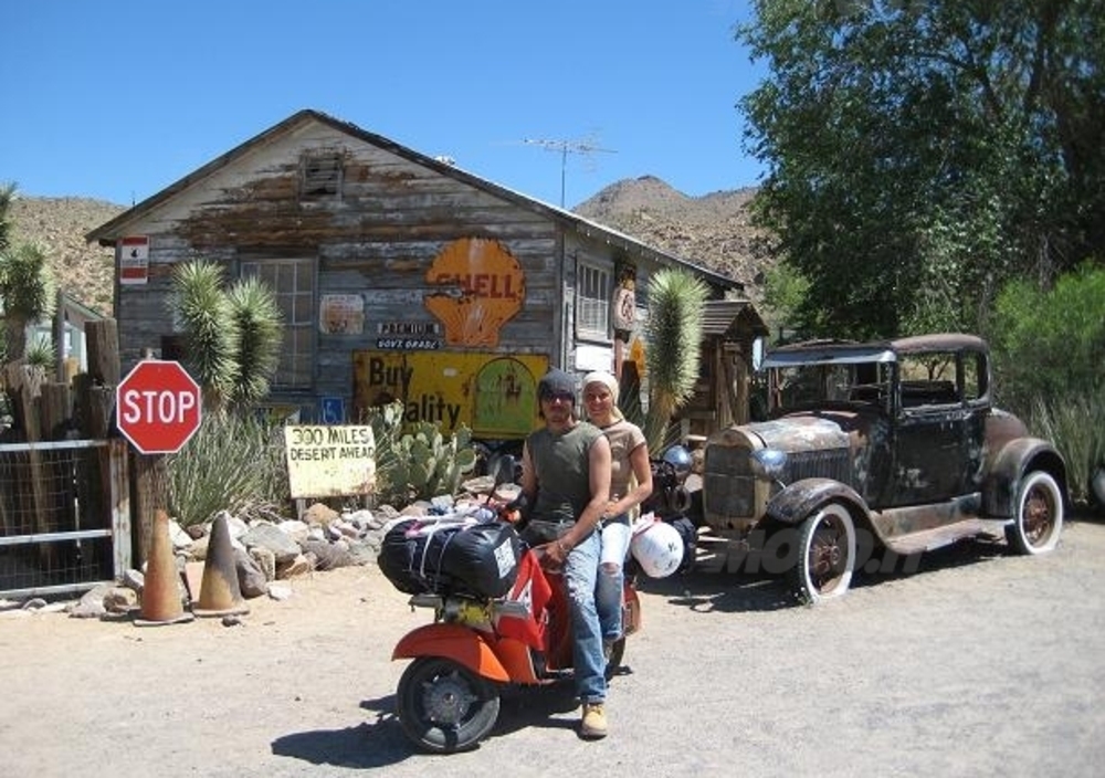 Ancora non voglio pensare alla fine del viaggio, ma e` stato un vero braccio di ferro tra la natura selvaggia dell`America e noi! Ci ha regalato qualcosa che non cambierei neanche con tutti i soldi del mondo! Ogni notte quando andiamo a dormire, ci passano davanti migliaia di immagini, di persone e posti. Tutti i saluti, i pollici in su e gli aiuti ricevuti, la forza del vento e la pace durante le notti stellate in tenda nel deserto. Non pensate all`America che molte volte fanno vedere in modo sbagliato, gli Americani quelli che lavorano, quelli che incontri per strada sono fantastici, l`Asia e` chiamata la terra del sorriso , ma per quanto ci riguarda, gli americani non sono da meno! Ho sognato per tutta la vita questo viaggio, non sapevo bene il perche` ma questa terra mi chiamava! E la realta` supera la fantasia, sia come natura che come umanita`! Mettete da parte i soldi, vendete la macchina se l`avete e venite sulla route66 in Vespa, e` da sballo! Lasciate a casa tutti i dubbi e le paure qui e` ancora liberta`. Potete spedire la Vespa senza problemi, potete circolare senza casco in 2 con motore a 2 tempi carichi come muli e troverete soltanto sorrisi, aiuti e una natura scolvongente.