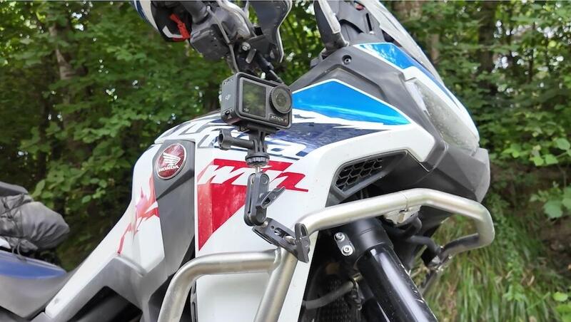 Ora un po' tutte le moto adventouring di serie o come accessori hanno diverse protezioni e punti favorevoli per il montaggio, anche alla nostra Honda non mancano, con gli agganci Smallrig molto economici ma anche efficaci ci siamo trovati sempre bene, poi dipende anche dalla qualità della action cam in grado di tagliare vibrazioni ma anche la correzione dell’orizzontale, su questo le DJI sono eccezionali.