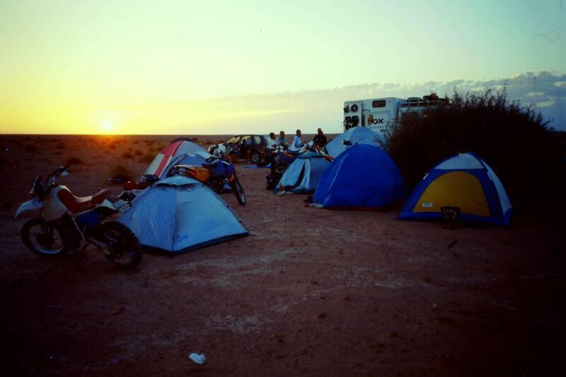 24 Aprile, Bir El Gazeil. Le azioni del risveglio diventano un rito: occorre prima riprendersi, poi svuoto la tenda mi metto gli abiti da lavoro e chiudo le borse, poi l’abbondante colazione (quest’anno è stata ottima l’idea del latte in polvere, più pratico di quello condensato) con caffè, latte, the, biscotti e marmellata, si sparecchia, magari un altro caffettino, poi si chiude la tenda, si carica il tutto su M.D., ci si carica sulle moto e via. Certo è che le faccette che si vedono in giro al mattino sono veramente notevoli, però l’efficienza non ne risente e all’ora stabilita, normalmente le otto, i motori sono accesi.