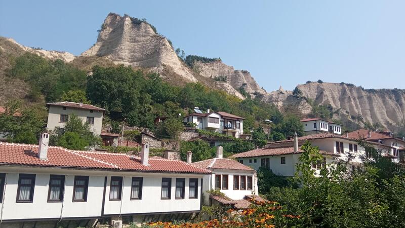 L'altra tappa interessante è il piccolo villaggio di Melnik circondata da un paesaggio lunare con strane formazione di rocce arenarie che l'acqua e il vento hanno trasformato a forma di piramide che si stagliano in altezza come se fossero affettate da un grosso coltello. Lo stesso villaggio fatto di case ottomane restaurato alla perfezione sembra una bomboniera, si racconta che sia il paese con meno abitanti di tutta la Bulgaria.