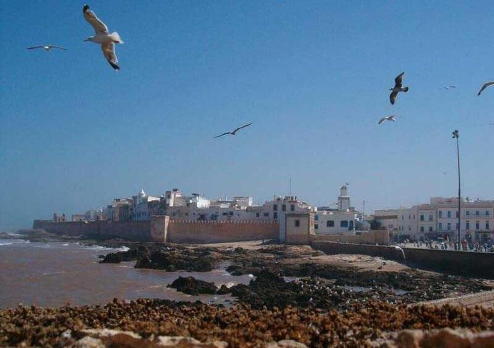 Costeggiamo per un lungo tratto l’oceano. Le coste sono alte e rocciose, le grandi onde che si frangono rumorosamente su scogli di roccia rossa. Siamo rapiti dallo spettacolo messo in atto dalla natura. Dall’altro lato della strada, la vegetazione, già rara, lascia spazio alla steppa tipica della fascia predesertica. Arriviamo a Essaouira, l’antica Mogador portoghese, la città del vento. Di antico ha conservato gli splendidi bastioni, di moderno ha gli amanti del wind-surf che affollano la lunga spiaggia.