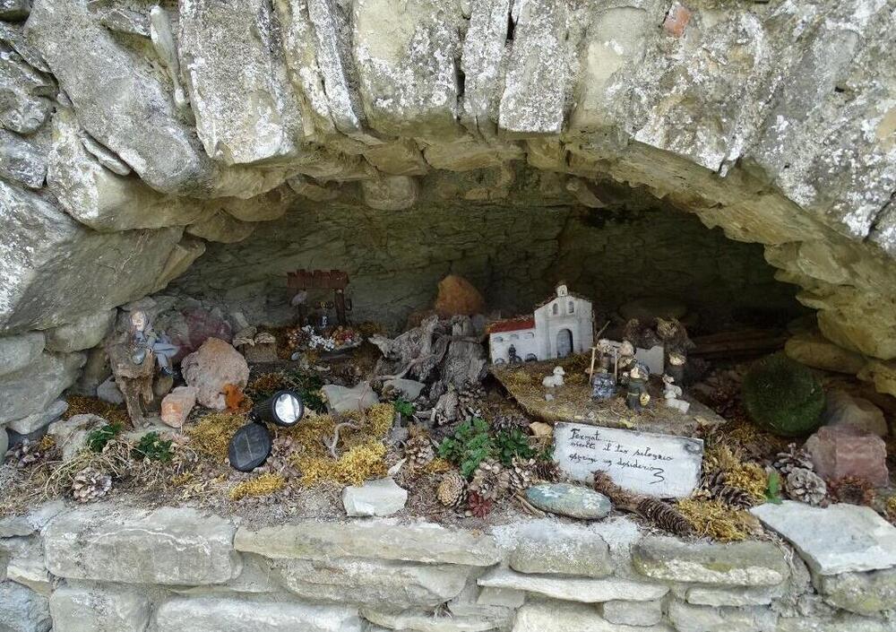 Mentre scatto le mie foto una signora da un vicolo mi chiama, vuole mostrami le sue opere fatte dipingendo e intarsiando pietre, coppi, ceppi di albero, con l’obiettivo di fare conoscere al turista la storia del Borgo, e mi ringrazia per essere venuto a visitarlo.