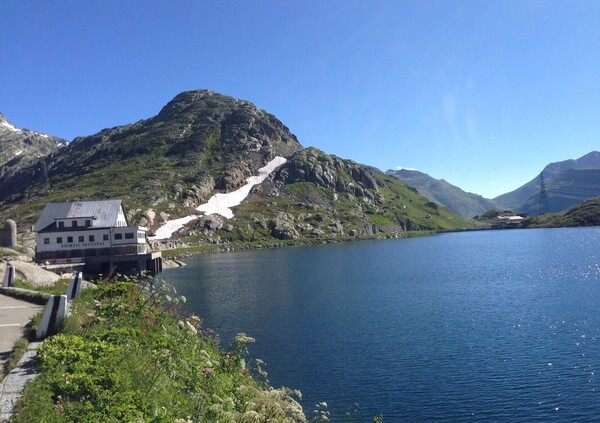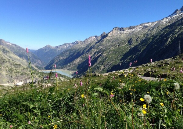 La discesa verso Innertkirchen è fantastica, e ce la godiamo in tutta tranquillità con il sole che inizia a scaldare, con le poche auto sulla strada - la maggior parte dei veicoli fa il passo al contrario in questa domenica di agosto - e con il meraviglioso hotel affacciato sul lago che appare come una fortezza inespugnabile nel cuore delle Alpi svizzere, inframmezzate da ripide gole. Intorno a noi tantissimo verde, poche e graziose casette, molti escursionisti che respirano l’aria fresca del cantone bernese e un solo grande paese dove si trovano alcuni alberghi e bar, Guttannen. Poi è di nuovo solo asfalto da mordere in un contesto naturale quasi idilliaco fino a Innertkirchen, dove si abbandona la Strada 6 per deviare sulla 11. Anche in questa vallata c’è una sola cittadina importante, Gadmen, mentre il resto è tutto rocce dolomitiche, prati verdi, pascoli di alta montagna e ghiacciai che resistono stoicamente al surriscaldamento del pianeta.