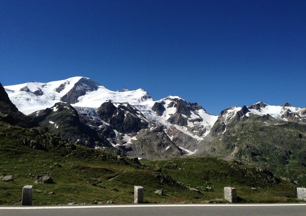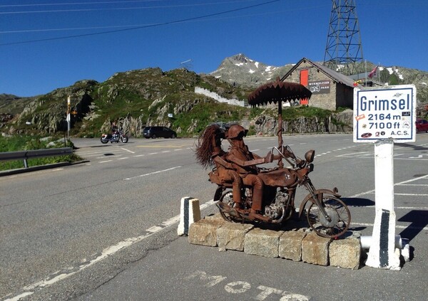 La nostra domenica non potrebbe partire in modo migliore. Affrontare il Grimsel Pass credo sia uno dei "buongiorno" più entusiasmanti che possano esserci per un motociclista. Il cielo è blu intenso, nessuna nuvola appare all’orizzonte, ma il freddo, anche se siamo all’inizio di agosto, sa farsi sentire nelle ossa mentre alle 9 del mattino saliamo verso quota 2.000 metri. Le curve del Grimsel sono divertenti, piacevolmente lunghe, anche se conducono velocemente alla vetta del passo dove piccoli laghi artificiali rendono quell’atmosfera di montagna selvaggia un po’ più accogliente.