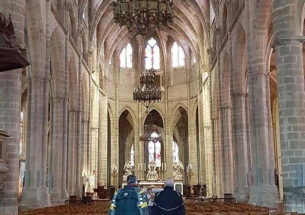 Attilio, il nostro esperto di arte religiosa, si rivela più informato di una guida verde Michelin e prova a raccontarci simboli e significati della chiesa. Noi, ammirati da cotanta conoscenza, non nascondiamo stupore davanti all’erudito compagno di viaggio. In effetti la Chiesa della Natività della Vergine che ora beneficia di un'iscrizione nei Monumenti Storici, è stata ricostruita nella prima metà del XVIII secolo, ma l’originale stile barocco mette in evidenza un magnifico campanile ottagonale del XV secolo, oltre a file di finestre ogivali sormontate da oculi sulle sue volte.