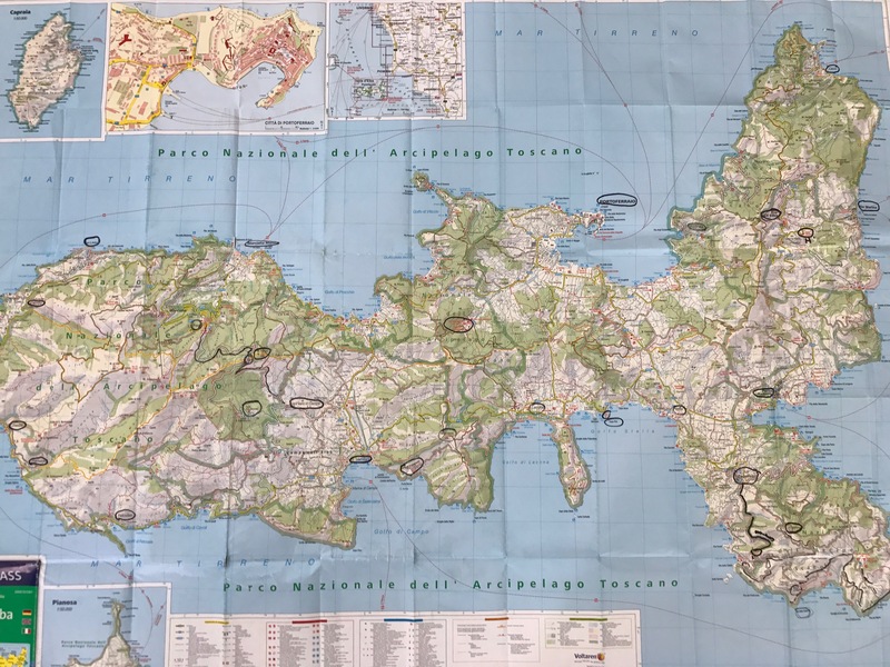 Come prima cosa, ci siamo attrezzati di cartina dell'Isola d''Elba e abbiamo iniziato a studiare i vari itinerari con i punti chiave da visitare.