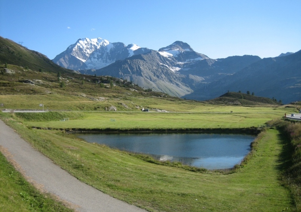 La stanchezza non accenna a farsi sentire, anzi, l'aria di montagna, il vento fresco, i ghiacciai mi inebriano talmente i sensi che i chilometri scorrono via veloci senza farsi sentire.