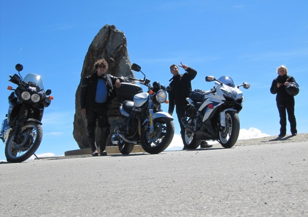 Da Susa saliamo per il Col de Moncenisio, qui la strada è uno spettacolo, larga, asfalto nuovo e tantissime curve, ma il vero spettacolo arriva sulla cima quando si percorre la strada che costeggia il lago. Proseguiamo per il Col de l'Iseran il Colle del Piccolo St. Bernardo e il Colle del gran St. Bernardo dove arriviamo per l'ora di pranzo 13.00.