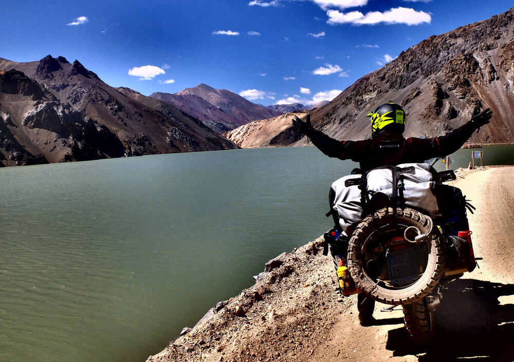 Si riparte alla volta del Cile, direzione Santiago. Ormai le zone di frontiera non ci fanno più paura, ci muoviamo con destrezza tra sportelli e scartoffie, e in men che non si dica saltiamo di nuovo dall’altra parte. Stavolta ci accoglie un lungo serpente d’asfalto, il Paso Cristo Redentor, che in pochi chilometri ci riporta alla calda estate cilena. La città è sempre più vicina, e gli imponenti grattacieli ci danno il benvenuto in una frizzante metropoli. Sostiamo qui cinque giorni, ne approfittiamo per riposarci e per portare Motorbye in BMW per qualche piccola manutenzione, ma naturalmente non ci facciamo scappare il meglio della capitale: gli ottimi pranzi del mercato centrale; la Plaza de Armas, dove i bambini giocano allegri nelle fontane; le innumerevoli file di bandiere del Palacio de la Moneda, che sfoggiano fiere al vento i loro tre colori; il piccolo castello del Cerro Santa Lucia, che si erge orgoglioso in mezzo alla distesa di grattacieli, fiero di difendere la sua autenticità storica; le originali stanze della Chascona, celebre abitazione del poeta Pablo Neruda...Raggiungiamo anche Valparaiso, e ci regaliamo un gelido tuffo nel Pacifico, in compagnia di foche e gabbiani.