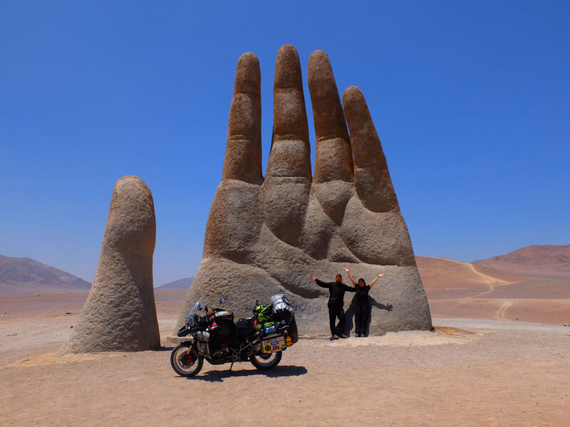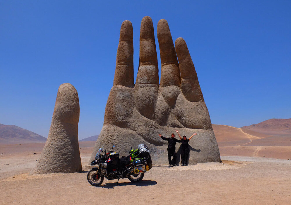 Da San Pedro de Atacama procediamo verso sud, lungo le dritte strade desertiche cilene. L’afa incessante e la sabbia chiara al lato della carreggiata indicano l’arrivo alla famosa "mano" del deserto di Atacama che da lontano ci saluta già, spiegando le sue cinque enormi dita al cielo. Ci incamminiamo verso Taltal. Annoiati dalla monotonia del paesaggio, decidiamo di deviare verso la Ruta 1, e in poco tempo ci ritroviamo sulla costa. Qui l’odore del mare ci assale piacevolmente, ma purtroppo la strada non è delle migliori: le numerose pietre di grandi dimensioni e i cumuli di sabbia che invadono il tragitto ci costringono al ritiro. Arriviamo a Taltal al tramonto, dopo più di 800 chilometri e dodici ore di moto! Siamo esausti, ma felici di aver rivisto il mare dopo tanto tempo. La strada verso La Serena non è certo la più panoramica che il Cile possa offrire. Tuttavia, quando si ha a che fare con viaggi così lunghi, qualche tappa di trasferimento, per quanto noiosa possa essere, diventa necessaria.