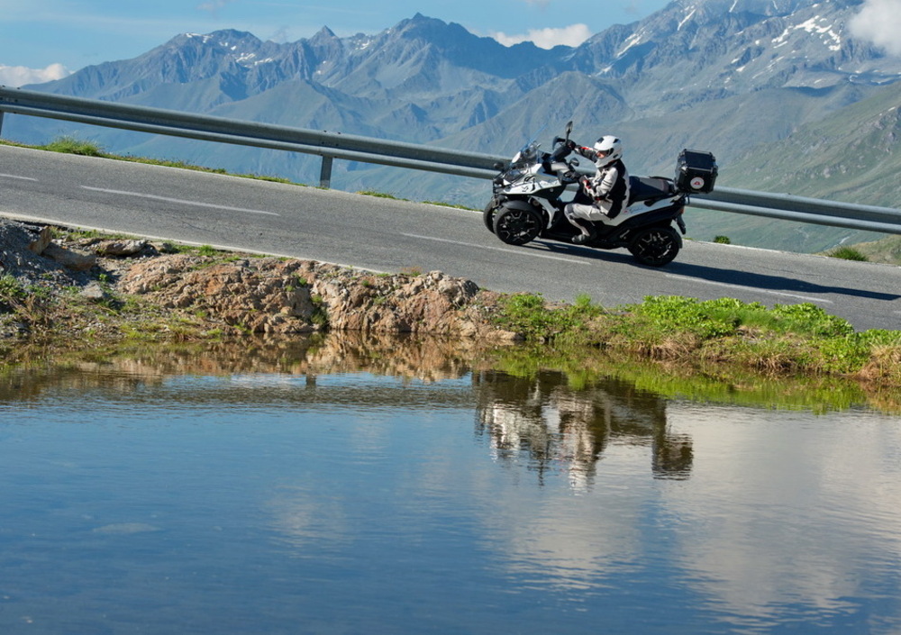Il tempo corre in fretta, e noi siamo costretti a seguirlo. Si riprende la marcia e, dopo una visita del genere, non potevano che andare a scoprire il primo luogo di adozione di questo dolce e mansueto molosso: pensate che le tracce del primo allevamento risalgono a ben 300 anni fa! La strada che conduce al colle del Gran San Bernardo è uno dei percorsi più spettacolari al mondo. La vista si perde fra vette e vallate, e la trama della roccia, la potenza della natura, viene fuori in tutta la sua ieratica bellezza. Per un motociclista è una della massime espressioni da vivere, un destra-sinistra continuo, con il ginocchio sempre fuori. Il nostro Steinbock è stabile e reattivo, il peso si sente ma è ben distribuito in un perfetto equilibrio di masse. Magari il motore, un 350 centimetri cubici con 30 cavalli, non è il massimo per salire certe pendenze, ma è il grande equilibrio di un assetto distribuito su 4 ruote che consente di tenere il propulsore sempre in tiro, chiudendo il gas molto raramente, evitando così il calo di coppia.