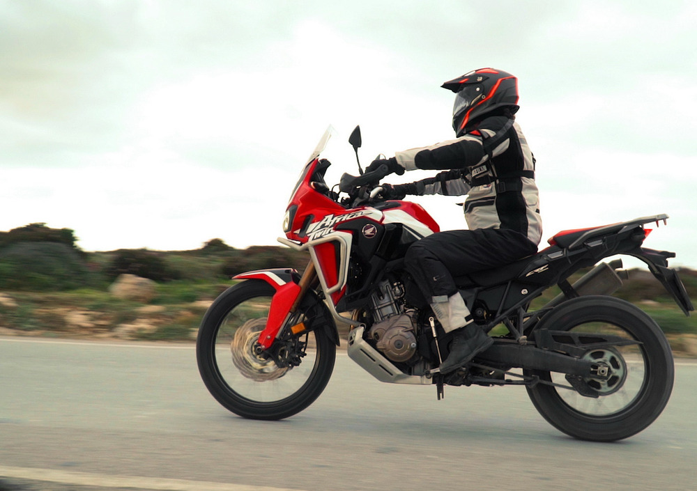 Finalmente abbiamo modo di gustarci la nostra Africa Twin, di apprezzare il tiro ai bassi e quell’erogazione pulita e rotonda che ci fa guidare in grande sinergia con il mezzo e con la strada a tratti sconnessa.