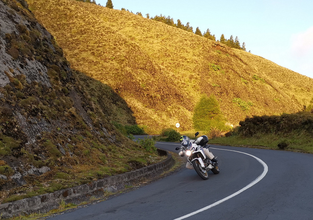 La destinazione successiva dista quasi un’ora di strada, che, per un’isola lunga 60 chilometri, fa un po’ strano a dirsi! Le strade sono piacevoli e scorrevolissime, quelle principali sicuramente, quelle interne ovviamente un po’ meno, ma sono più che dignitose, molto meglio di quelle italiane! Il percorso per giungere a Sete Cidades, specie nella sua parte finale, è uno dei più belli e divertenti che si possano incontrare, sia per il grip dell’asfalto, davvero ottimo, che per una rapida serie di curve destra-sinistra che si susseguono lungo il lato della montagna.