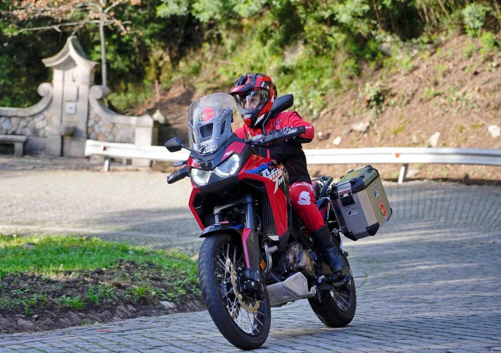 Il punto di arrivo è Viana do Castello, ma saliamo su di un colle trovandoci, come ieri, nuovamente in una posizione sopraelevata che domina un paesaggio di grande impatto, citato anche da National Geographic, ma che è niente in confronto a ciò che abbiamo visto ieri sulla cima del monte Farinha. E’ qui che sorge il santuario di Sanzia Luzia, una massiccia struttura che colpisce per la sua architettura romanico bizantina dalla quale spiccano gli imponenti rosoni che sono i secondi più grandi in Europa. L’unico rammarico sono i lavori di restauro alla facciata principale che ne deturpano momentaneamente l’originale bellezza. E di nuovo in sella alla nostra Africa Twin che, con un setting appropriato delle sospensioni, digerisce benissimo le asperità di un asfalto irregolare dove i sanpietrini tendono sempre a dare quel senso di instabilità specialmente in curva.