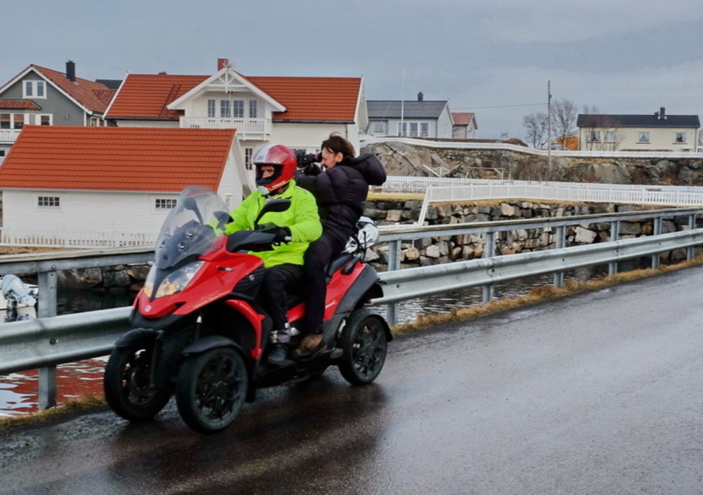 L'idea che stamani partiamo per l'ultima tappa, in tutta sincerità ci rallegra un po'! Non è stato certamente un viaggio facile e sebbene i chilometri percorsi siano stati pochi, il fatto di girare con acqua, vento, neve e ghiaccio non riesce a trasmetterti quel feeling voluto. Il Quadro4, considerando oltretutto che è stato in assoluto il primo modello immesso sul mercato, non ha mai lamentato il minimo segno di cedimento o problemi di gioventù dovuti magari ad un limitato periodo di prova. La dote più apprezzata in assoluto è stato il comfort, un comfort dovuto ad un'ampia sella e ben sagomata, all'ergonomia dei comandi e all'efficiente protezione aerodinamica del cupolino. Anche le sospensioni non se la sono cavata male anzi, a parte mantenere in perfetto assetto di marcia un veicolo di oltre 300 chili in ordine di marcia, i quattro ammortizzatori sono sempre stati in grado di filtrare le asperità del terreno in maniera molto elastica e progressiva. Come abbiamo già detto in precedenza la potenza non è esorbitante ma è quanto basta per spostarsi liberamente in città o anche fare del turismo un po' estremo come quello che il format di Planet richiede.