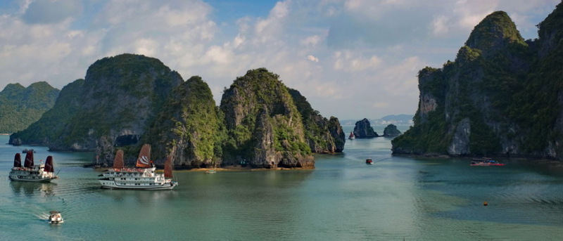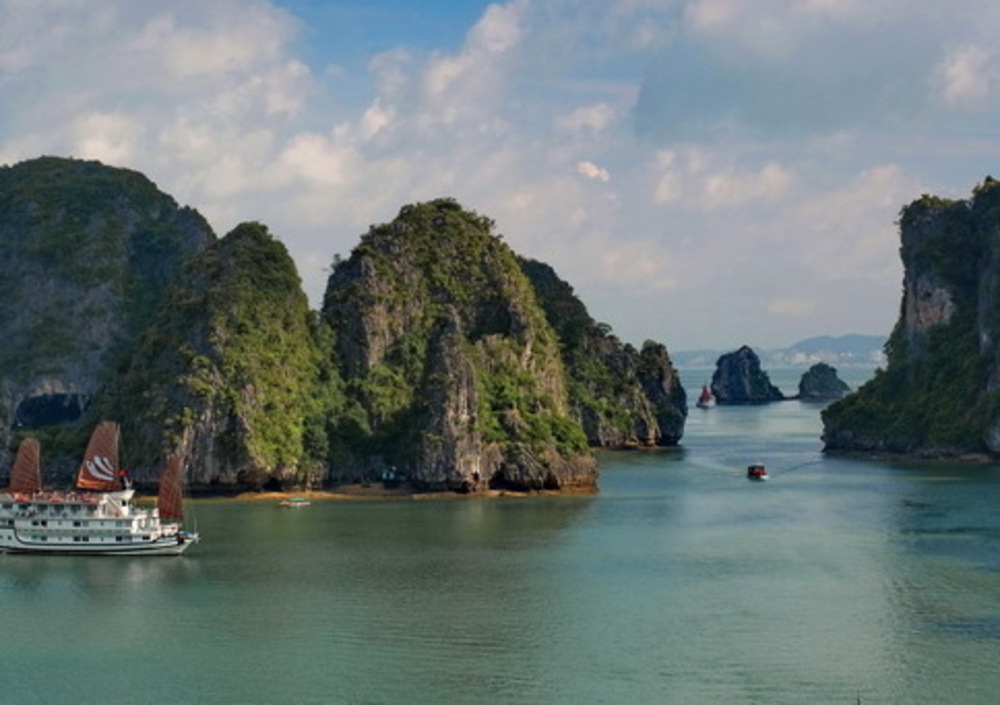 Abbiamo meno di 10 minuti per raggiungere il porto di Tuan Chau per lasciare la Vespa ed imbarcarci sulla Bahia 2, una giunca in stile coloniale con il giusto compromesso fra fascino e comfort. Scivoliamo con dolcezza all'interno della baia, la baia di Ha Long, che ci scopre pian piano le imperdibili bellezze naturali del Vietnam. Sono 2.000 le isole che costellano questa porzione del golfo di Tonchino, un ampio paesaggio marino costellato da centinaia di torri calcaree dalle cime arrotondate che si innalzano per decine di metri dal livello del mare. Secondo le antiche leggende questi frammenti di isole e isolotti nella baia sarebbe dovuto al colpo di coda di un dragone, stando invece alle più autorevoli teorie dei geologi questa morfologia deriva dall'attività erosiva delle acque che hanno lavorato anche sulle basi carsiche negli ultimi 300 milioni di anni. Affascinante sapere che già 25.000 anni questo arcipelago sviluppò i primi insediamenti e che addirittura molte culture, a rifarsi dai Soi Nhu, si sono qui evolute in epoca preistorica. E proprio in mezzo alla baia di Ha Long, in mezzo ad un canale puntellato di faraglioni e pinnacoli, si cela la grotta della Sorpresa che, al di la del nome, è un'autentica meraviglia. Da scoprire e da visitare. Un viaggio nella storia della geologia, fatto di migliaia di stalattiti e stalagmiti generatisi 100.000 anni fa dalle abbondantissime piogge che ritirandosi hanno lasciato così la loro traccia indelebile.