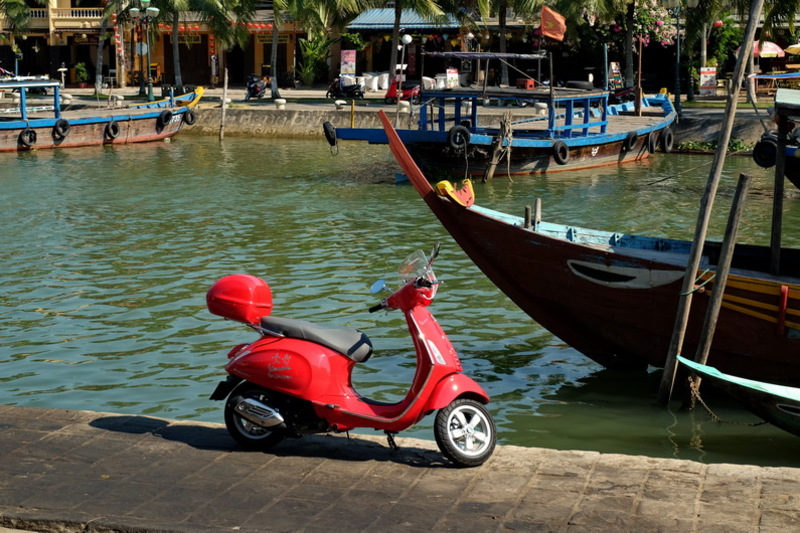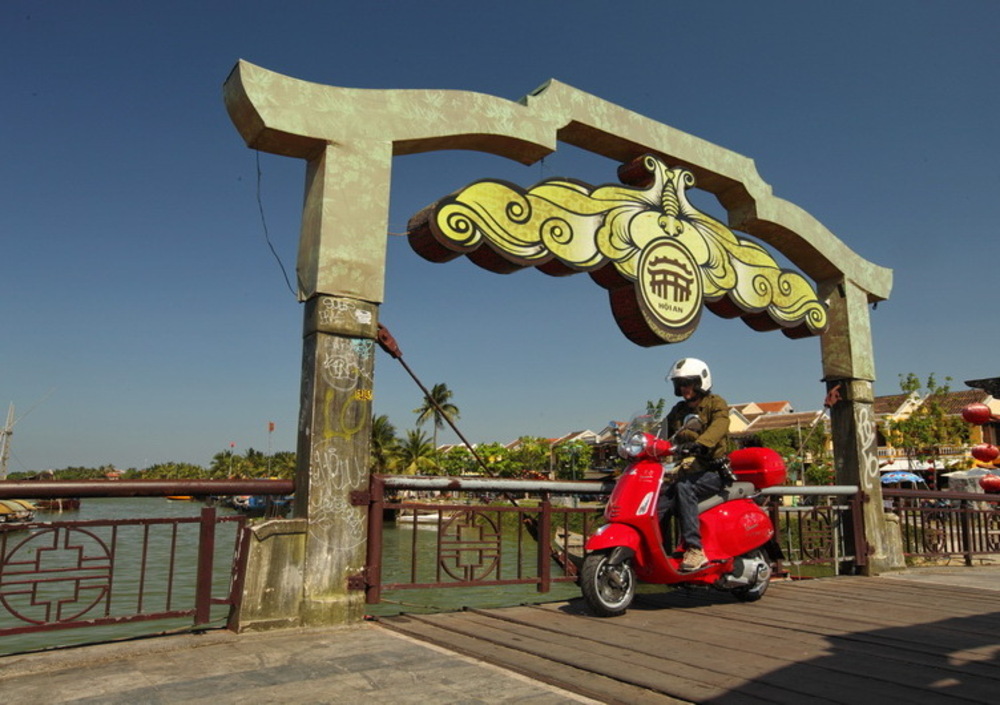 Hoi An è la puntata di oggi, un luogo in netta contrapposizione a quanto vissuto a Sa Pa, una città del passato che vive perfettamente nel presente, restando in equilibrio con la sua storia e le sue tradizioni. E tanto per mantenerle ancora più integre, da poco è giunta un'ordinanza locale che vieta tassativamente il passaggio di qualsiasi mezzo a motore, quindi inclusi scooter e motorini, nel suo centro storico, sia al mattino che al pomeriggio, fino a tarda sera, dopo le 21.30, quando ormai la magia del luogo di spegne assieme alle sue luci e ai suoi mille riflessi. Sicuramente questa città è a misura di Vespa e, per sentirci ancora più liberi, togliamo pure il portapacchi anteriore, indossando però sempre il casco, così, oltre alla sicurezza, ci aggiungiamo anche un tocco di originalità!