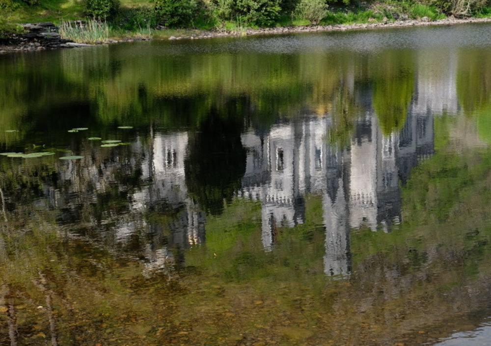 La nostra prima meta storico-culturale della giornata, che in realtà è pure l’unica, si può considerare una tappa obbligatoria di questa regione. Kylemore è un classico esempio di trasformazione, anche se non propriamente architettonica, quanto piuttosto come destinazione d’uso. Edificata in stile neogotico attorno al 1860 come castello, con l’arrivo della comunità benedettina nel 1920 fu tramutata in abbazia con il ricavato del commercio di cotone di Manchester. Nella più celebre abbazia del Connemara. Ciò che la rende ancora più suggestiva è lo scenario nella quale è incastonata, con una collina alle spalle ed un laghetto limpidissimo sul fronte, con un immenso giardino ed alberi secolari che portano fino alla chiesetta gotica, anch’essa inclusa nella proprietà di tale Mitchell Henry, finanziere nonché parlamentare inglese. Insomma, come a dire che i politici, ovunque si trovino ed in qualunque epoca vivano, riescono quanto meno ad essere filantropi di se stessi!