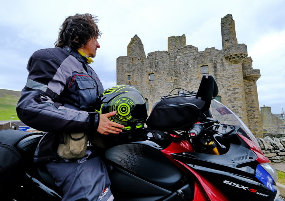E la moto direte voi? La nostra GSX S 1000 F non è mai stata così felice in mezzo a rettilinei lunghissimi, interrotti da qualche semicurva che si snoda in mezzo a dolci altopiani. E con un traffico, come potete facilmente immaginare, quasi inesistente. Molto rotondo e corposo nell’erogazione si dimostra il 4 cilindri Suzuki, anche se resta un po’ troppo secca la risposta nel classico apri-chiudi. E dopo aver percorso oltre 100 chilometri in un fazzoletto di terra non possiamo che spingersi oltre, andare più a nord, in un’arcipelago ancora più remoto. Le isole Shetland sono conosciute per la lana e per il vento, ed in effetti sia di pecore che di raffiche ce ne sono in quantità industriale! Dalle Orcadi, partendo però dal porto di Kirkwall, si arriva a Lerwick, nelle Shetland, in sette ore di navigazione, attraversando un mare che non è certo dei più calmi. Non sappiamo quanto valga la pena una visita in queste isole che, rispetto alle loro consorelle più meridionali, hanno decisamente meno da offrire sotto un punto di vista preistorico e quindi archeologico. Certo che se amate l’avifauna le Shetland sono uno dei più grandi paradisi terrestri, uno dei luoghi più straordinari al mondo per la nidificazione di uccelli marini. E da Somburgh Head, dove si incontrano e si scontrano le acque dell’oceano Atlantico con quelle del mare del Nord, noi ci gustiamo la bellezza di un ecosistema ancora puro e soprattutto protetto, come vorremmo fosse anche il resto del nostro mondo.