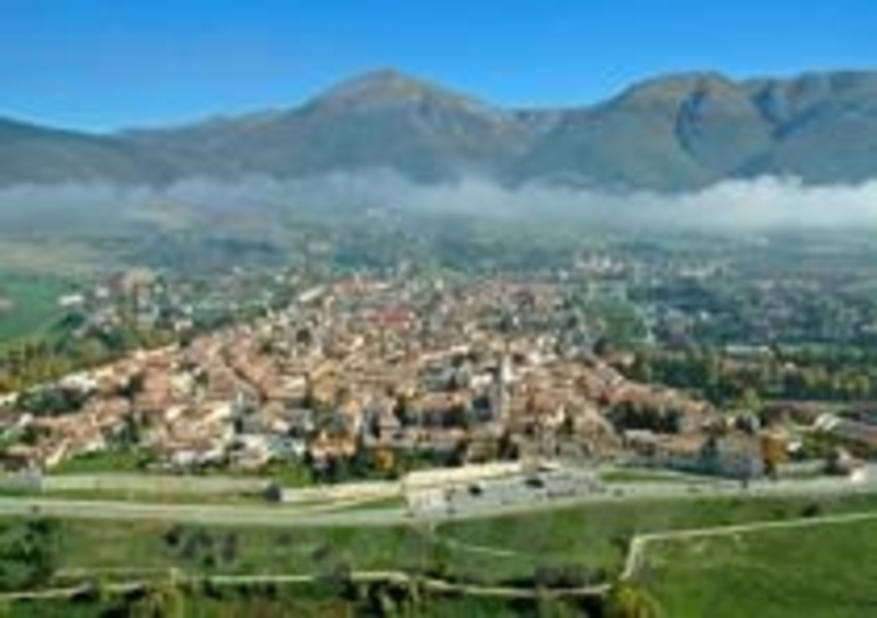 Affronto la salita verso Forca Canapine, da cui si gode un magnifico panorama della vallata di Norcia e della città. E' una salita facile, lunga ma con poca pendenza e poche curve, e la vespona sale tranquilla anche in quarta.