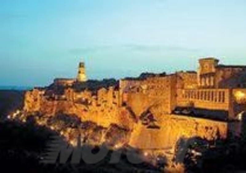 Attraverso Scansano che è un centro costruito in parte su uno sperone roccioso come altri in queste terre, e poi Manciano, in cima a una collina, dominata da un fortilizio,Più avanti incrocio un trattore, e mi accorgo che è il primo mezzo incontrato da Braccagni, cioè da circa 80 km , e intanto mi dirigo verso Sovana, insediamento antichissimo di origine etrusca, che dette i natali a Ildebrando, noto come papa Gregorio VII, passando in mezzo a necropoli etrusche rupestri, finchè entro nell'abitato.Sovana è piccola, totalmente medioevale, un vero gioiello, e vedendola di notte, senza anima viva in giro, con le luci gialle che sembrano torce, sembra di essere veramente nel medioevo, come un viaggiatore nel tempo.Dopo un breve saliscendi affronto i due tornanti che sotto la rupe di Pitigliano mi portano al centro da dove proseguo per la Tuscia e Orvieto.