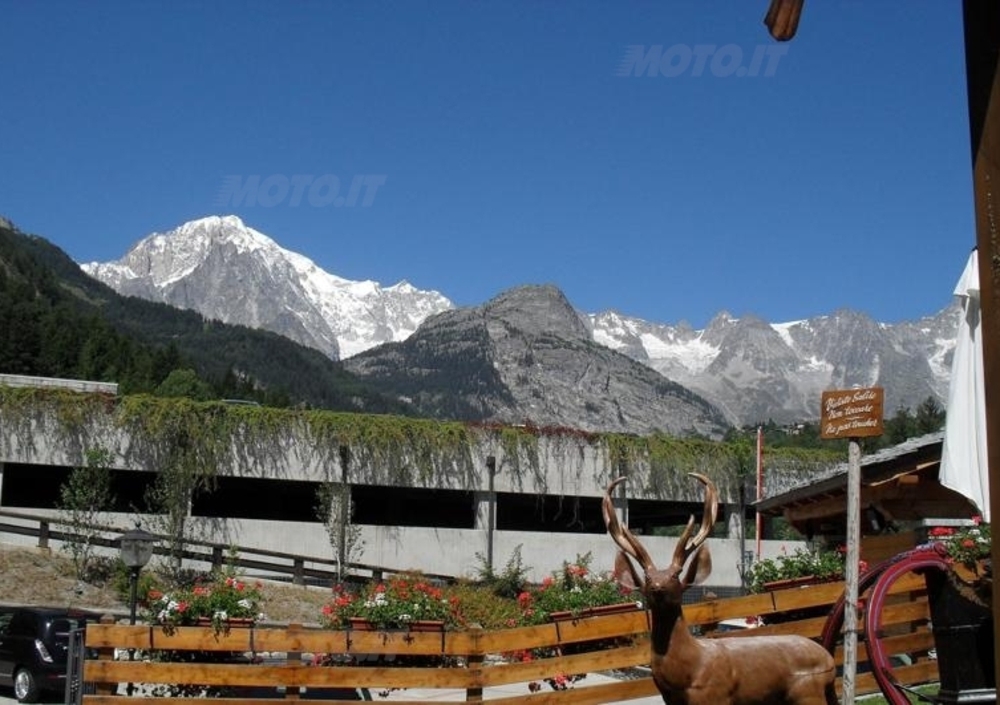 Scendiamo verso La Thuille dove assaggiamo un ottimo cioccolato e quindi scendiamo a Pre-Saint Didier dove ci fermiamo a pranzare alle pendici del Monte Bianco: risotto con funghi porcini e salumi tipici della Val D'Aosta.