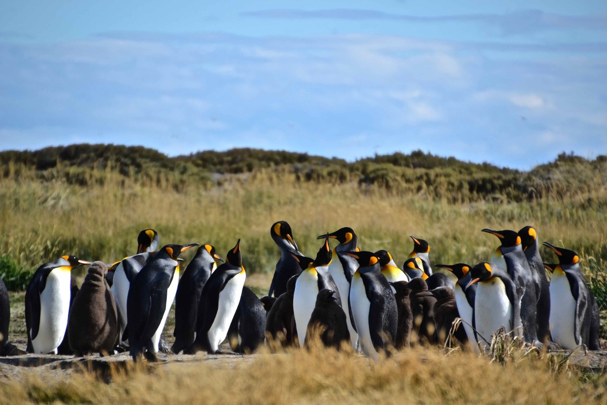 Una colonia di Pinguini Imperatori migrati dall’Antartide alla Patagonia Cilena.