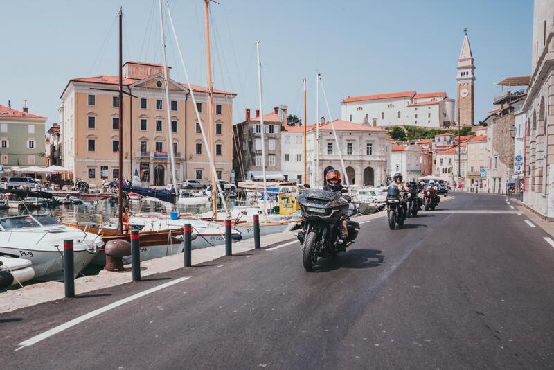 Per la sosta del pomeriggio (la merenda è obbligatoria, specialmete con questi 35 gradi!) parcheggiamo le nostre Harley in una meta imperdibile: Rovigno, incastonata sulla costa, conquista al primo sguardo. Un dedalo di viuzze ciottolate, facciate dai colori caldi che si riflettono sull’acqua e barche da pesca che dondolano lente nel porto: tutto a Rovigno evoca una bellezza antica e senza tempo.