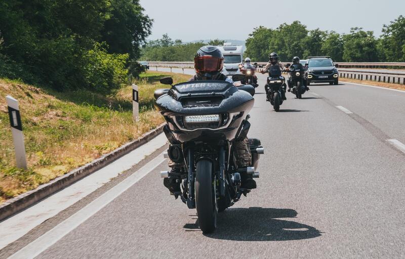 La Low Rider ST si rivela un'ottima compagna di strada: comoda, protettiva, con le due borse laterali belle capienti per i cinque giorni a zonzo che ci aspettano. Il V-Twin Milwaukee-Eight 117 spinge forte e... bisogna ammetterlo, fa sentire veramente dei fighi, il total black con dettagli rossi (in piena livrea MBE!) fa il resto. Bella, potente, confortevole. Cosa vuoi di più?