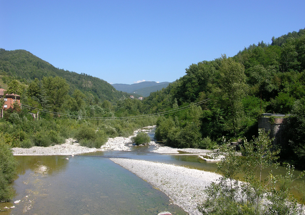 A Rivergaro passa il Trebbia, un piccolo fiume di montagna, e che in una splendida giornata, come oggi, è stracolma di gente che nuota, si tuffa e di bambini che giocano.