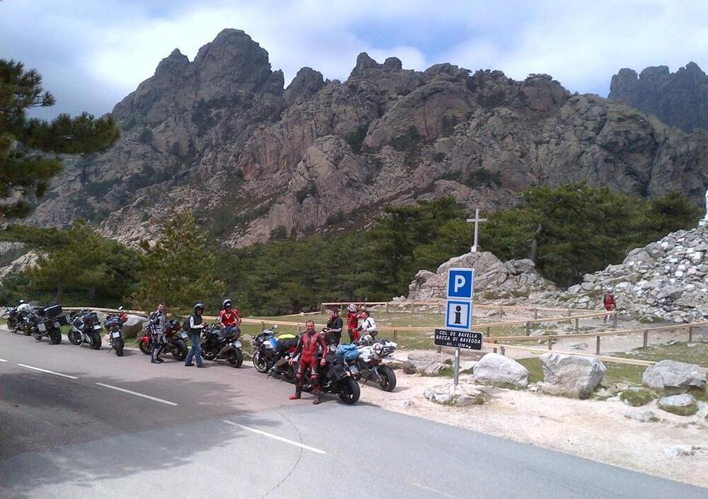 ci svegliamo presto, piove, il tempo di fare le petit dejouner e smette, carichiamo i bagagli e partiamo direzione Vivario, qui prendiamo il bivio per la D69 direzione Ghisoni, una strada che ho fatto 2 anni fa era molto sconnessa stavano facendo molti lavori ma è molto panoramica, la strada dopo 2 anni è stata asfaltata perfettamente e sale in mezzo a un bosco e montagne che sembrano un passo alpino, discendiamo fino a Ghisoni, la strada è bloccata da un Camion dei pompieri che sta recuperando una mucca morta caduta in una scarpata, ne approfittiamo per fare una pausa, l'aria è frizzante ripartiamo costeggiando il fiume Tavignano e ci avviciniamo alla costa, fa sempre piùcaldo la strada molto è molto bella e suggestiva, arriviamo a Ghisonaccia e proseguiamo fino a Solenzara sulla costa da qui prendiamo la D268 Route de Bavella, i paesaggi cambiano in continuazione montagne, fiumi, laghi, mare e poi ancora canyion e montagne la strada sale fino alla cima dove ci fermiamo per fare qualche foto alle Guilles de Bavella appunto. Scendiamo fino a Zonza dove ci fermiamo per un panino e una Petra (la birra di castagne Corsa ), il programma prevede di dirigerci a Bonifacio ma e' presto si sta' bene e la voglia di guidare è tanta, decidiamo di prendere un caffè ad Ajaccio, scelta azzeccata la strada tanto per cambiare è spettacolare anche se c'è un tratto di 6 km di sterrato, caffè nella caotica Ajaccio e ripartiamo per Bonifacio sulla N198. La strada è un serpente d'asfalto rosa che costeggia il mare e dopo 60 km di curve infinite ci fermiamo in una piazzola di sosta, ci leviamo i caschi con il sorriso a 42 denti, che goduria! Proseguiamo a passo sostenuto fino a Bonifacio fino al Camping de l'Araguina dove abbiamo prenotato i Boungalow per la notte, ci accoglie la proprietaria Pascal, il Camping si trovo proprio all'ingresso di Bonifacio, la sera passa piacevolmente fino a tardi tra qualche bevuta e risate presso la Riviere des Vins, che giornata ragazzi.