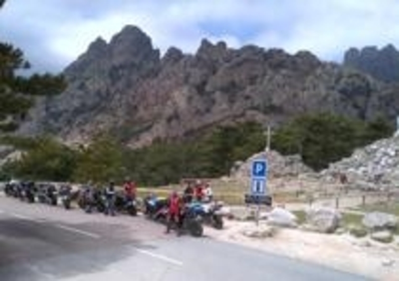 arriviamo al porto di Bastia, pioviggina fa fresco, un ragazzo Genovese che andava a trovare il padre trasferitosi sull'isola, mi dice che quando al mattino il tempo è così, di solito il tempo migliora e non piove... sarà.... la carovana parte direzione Saint Florente passando da Patrimonio arriviamo al desert des Agriates (spettacolo) ci fermiamo per una foto, da qui proseguiamo lungo la costa sulla D81 la strada che costeggia la costa, non c'e' trafficco ci lasciamo prendere la mano, curva dopo curva. Arriviamo a Calvi dove ci fermiamo per il pranzo presso Le Tire Bouchon tutto molto buono e i proprietari molto gentili. Ripartiamo per riprendere la N197 per Corte passando all'interno per Calenzana, la strada è sconnessa ma molto suggestiva, arriviamo a Corte un paesino molto carino proprio al centro dell'isola animato dagli studenti dell'università e dai turisti che qui partono per i numerosi trakking della zona, ceniamo presso la Riviere des Vins. La giornata e' finita a proposito non ha piovuto aveva ragione il ragazzo Genovese.