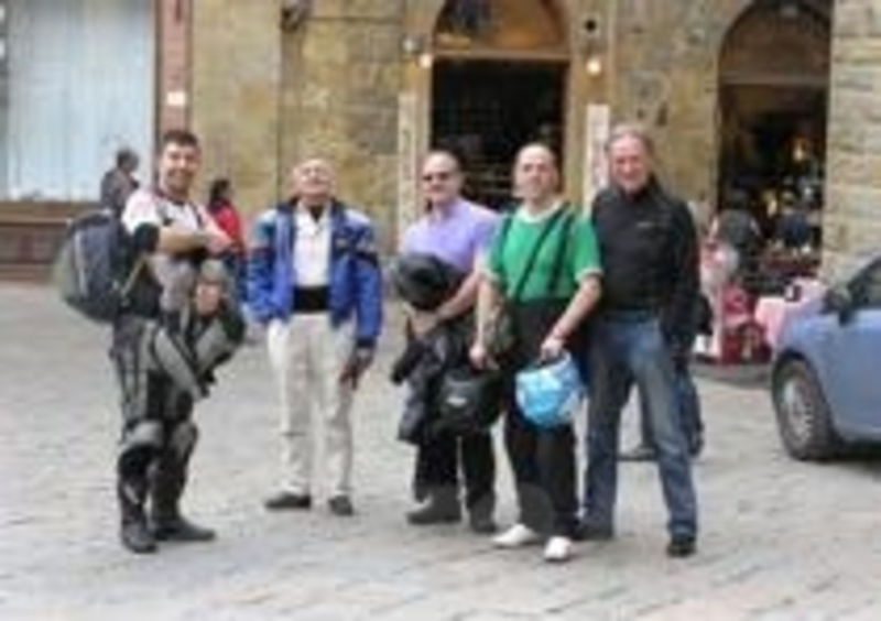 Visita a Volterra e proseguimento per San Gimignano per poi arrivare nel tardo pomeriggio all’agriturismo dove ci attende il nostro bell’appartamento. Stivali rigorosamente sul terrazzino, doccetta e nuovamente in sella per andare in paese a cenare (lungo la strada sterrata di collegamento un daino ci taglia la strada, bellissimo!); al ristorante, raccolti i soldi per pagare il conto, usciamo e stiamo per accendere le moto quando la cameriera ci viene incontro chiedendoci dove li avevamo messi e scopriamo che il nostro cassiere (non dirò mai il suo nome, neanche sotto tortura!) senza pensarci li aveva rimessi nel suo portafoglio. Scuse e sfottò di rito poi rientro in branda.