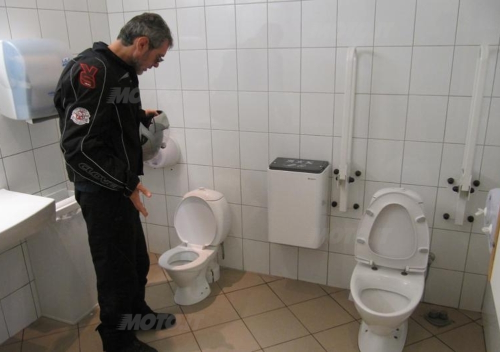 Ripartiamo. Il tragitto di oggi è previsto in circa 750 km, dunque è uno dei più impegnativi. Attraversiamo ampie zone boschive. Odore di legno segato. Cartelli indicano il pericolo di attraversamento da parte di animali selvatici. Non sarebbe stato più opportuno mettere delle reti di protezione ai lati dell’autostrada, come in Italia? Tra le mie paure comincia a farsi strada l’immagine di una cerbiatto che salta, taglia la strada e colpisce involontariamente uno dei nostri caschi con uno zoccolo. Raggiungiamo Amburgo alle 12.00. Ci fermiamo presso una stazione di servizio nella periferia della città. Ed è lì che vediamo il portachiavi più originale che uomo conosca. Chiediamo la chiave del bagno. L’addetta, sorridente, ce la fornisce immediatamente: è legata ad un pezzo di manico di scopa lungo 50 cm! Così nessuno dimentica di restituirla.