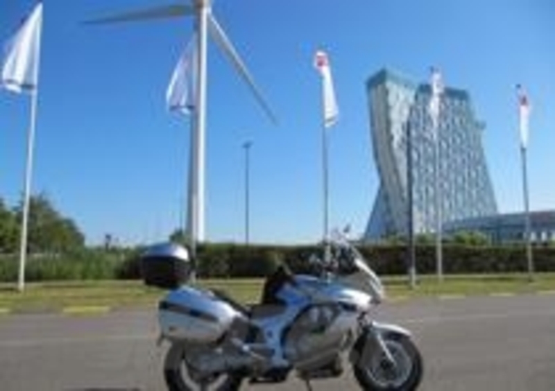 L’autostrada, si sa, è noiosa e rende il viaggio paradossalmente faticoso. Alternandoci alla guida ogni 250 km cerchiamo di stancarci meno. In Emilia Romagna si toccano i 35°C e soffriamo. A quella temperatura il calore del bicilindrico si fa sentire e chi guida si ustiona l’interno del polpaccio. E’ quello che ci succede. Arriviamo a Milano alle 17,30. La città è semideserta e girarci è piacevole. Attenzione alle rotaie del tram per non lasciarci le penne.