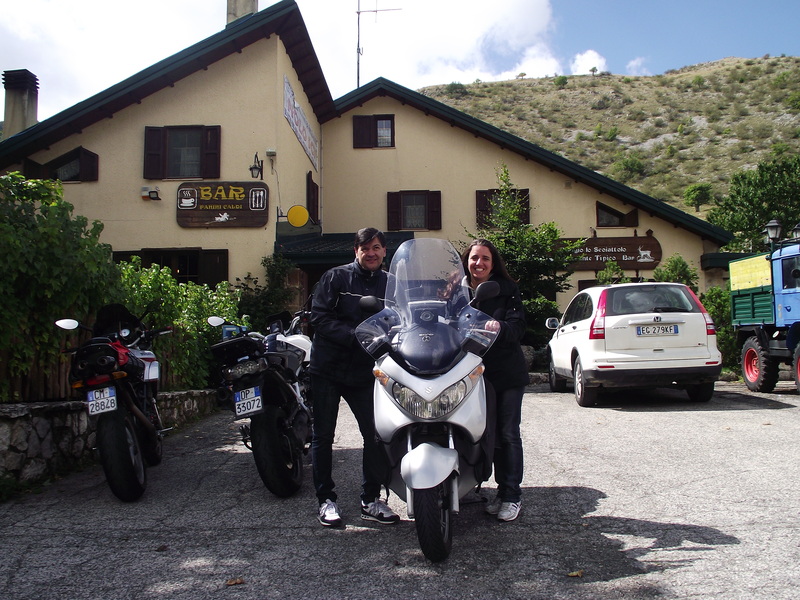 La mattina si presenta proprio come piace a me, fresca pungente ma con uno splendido sole. Voliamo (si fa per dire, usare questo termine con il nostro ciccino è quantomeno esagerato) al casello della A24, poi la monotonia intervallata solo da qualche bel panorama, si sale di quota e ci lasciamo alle spalle le uscite per Tivoli, Vicovaro, Carsoli, poi la diramazione A25 e qui scatta il primo allarme di mia moglie…. fame!! Ci fermiamo per una sgranchita alle gambe e la pausa… caffè e non solo, ma in pochi minuti siamo di nuovo in sella e di lì a poco conquistiamo Cucullo (circa 120 km da Roma) dove abbandoniamo l’autostrada per proseguire verso Anversa sulla SS479.