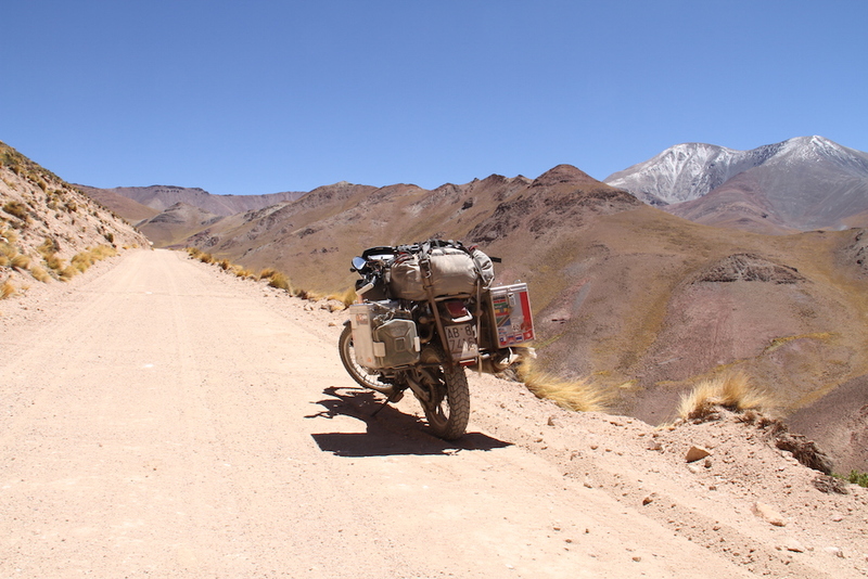 Arrivato a San Antonio, so che mi attendono altri 140 km prima di arrivare al confine con il Chile, altri 2 passi a 4200 e 4500 metri rallentano il mio cammino, ma riesco comunque ad arrivare alla dogana, pensando che ho tenuto medie da bicicletta, assurdo.fare una foto e inizio a sentirne gli effetti, nausea, stanchezza, faccio fatica a restare in piedi, decido quindi di ripartire. Arrivato in cima, penso che a parte i problemi alla moto io ho resisto bene all'altura.